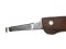 Der spezielle besonders ergonomische Griff aus Palisanderholz bringt in Verbindung mit der Klingenform beste Kraftübertragung.