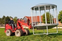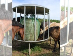 Besonders durchdachte pferdefreundliche Futter-Rundraufe mit Dach. 15 Pferde können hier gleichzeitig fressen. Es wurde nur Rundrohr verarbeitet und auch am Dach gibt es keine scharfen Kanten. Der Boden ist gebogen so dass Stoßregen sofort abfleßen kann.